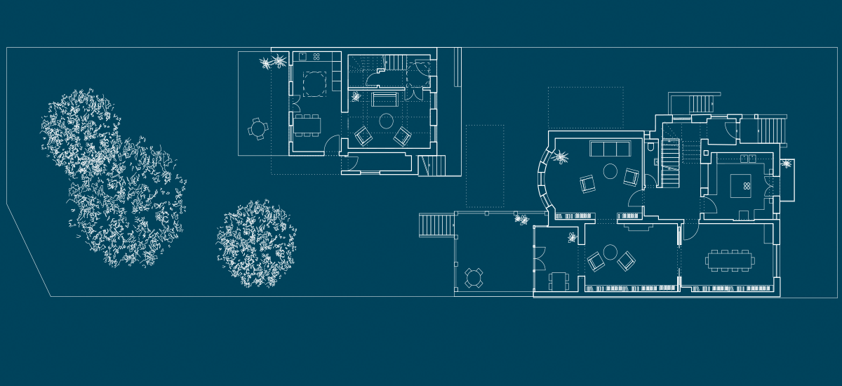 Das historische Eckhaus mit schön ausgestalteter Putzfassade liegt inmitten der denkmalgeschützten Anlage Neuwittelsbach in Gern. Das denkmalgeschützte Haupthaus bildet zusammen mit dem rückwärtigen ehemaligen Kutscherhaus ein kleines Ensemble. Das Anwesen wird seit vielen Generationen von einer Familie bewohnt. Nun soll es für die jüngste Generation mit möglichst wenig Eingriffen in die bestehende Substanz denkmalgerecht renoviert werden. In diesem Zuge werden die Dachflächen des Haupthauses gedämmt und die Heizungsanlage auf regenerative Energieträger umgestellt. Das im Garten gelegene Kutscherhaus wird an die Bedürfnisse der älteren Generation angepasst. Im Rahmen der Sanierung wird die Garage im EG zu einem Wohnraum ausgebaut und das gesamte Haus barrierefrei gestaltet. So bleibt das Ensemble allen Generationen gemeinsam erhalten.
